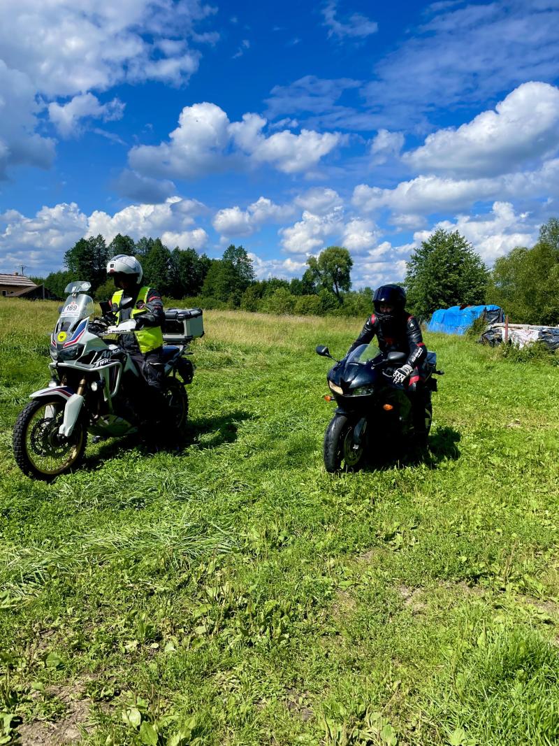 Bazą był Zajazd na końcu świata w Kruszynianach. Pokręciliśmy się trochę sprawdzając, jakie motocykle są w Drohiczyńskiej wystawie starych motocykli, jak zmienia się KasztelIk korona Podlasia, czy okiennice są dalej otwarte, czy cerkwie są dalej kolorowe oraz dokąd zaniosą nas oczy... okazało się, że zaniosły nas tak blisko granicy, że ... ale o tym chyba nie możemy pisać. Odwiedziliśmy tez "rodzinne włości" jednego z naszych ludzi, a co :) . Okazało się także, że CBR daje sobie radę poza asfaltem całkiem dobrze, bo przecież zawsze "wszystko zależy od kierownika" - a tym przypadku od KIEROWNICZKI!