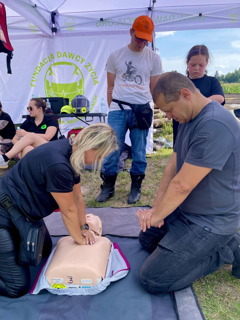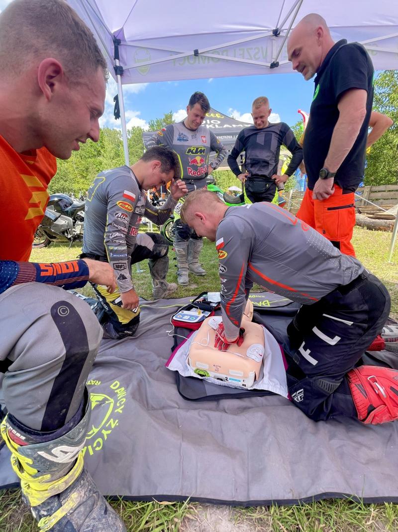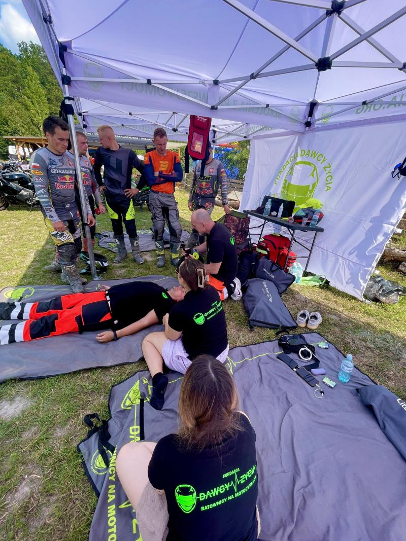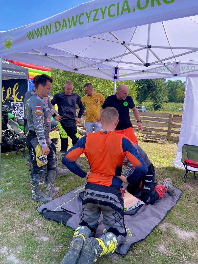 Ale wracajmy do pierwszych urodzin: pogoda dopisała, uczestnicy również. Nasze białe namioty z wiedzą ratowniczą jak zwykle cieszyły się odpowiednio dużym zainteresowaniem. Atrakcji było dużo, można było poćwiczyć i / lub wyszaleć się na torze, odpocząć, poćwiczyć pierwszą pomoc. Zakończeniem częśći oficjalnej był mega pyszny tort: ba jakże inaczej.